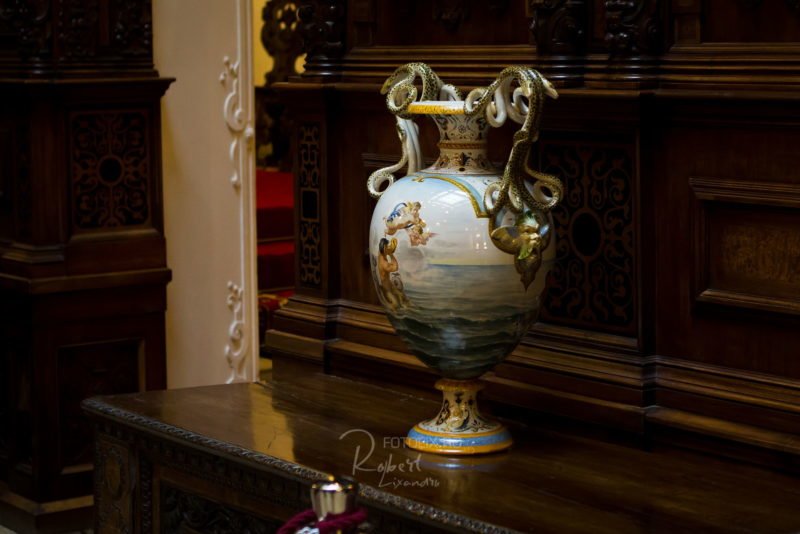 In 1948 the castle was confiscated and was found in the administration of the state. It is sayd that the husbands Ceasusescu wanted to transform the castle into a residence for protocol, but curators who managed the museum in the castle said that inside there is a wood fungus which is very harmful to humans, because it was known that the two had the mania of doing various changes to buildings, in particular demolitions. Thus Peles could be saved and remained unchanged.
